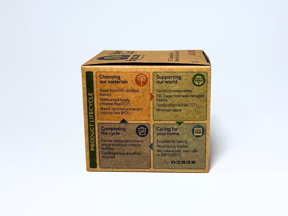漂白していない完全塩素フリー(TCF)の耐油紙を使用しています。