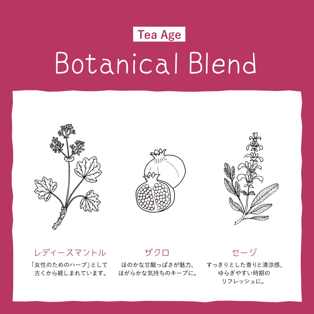 レディースマントルやヤロウ、セージ、スイートクローバーなどに、レモンバームとザクロを合わせた豊かな香りのブレンドです。